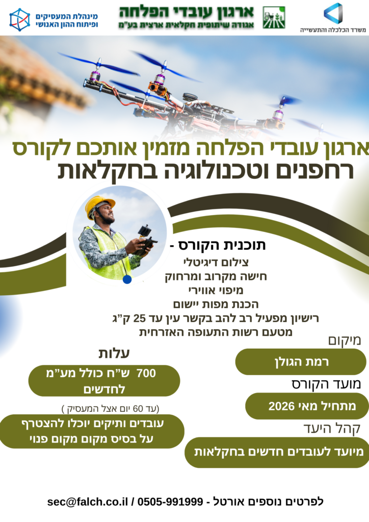 יש לכם זיקה טכנולוגית וחיבור לגאדג’טים וחידושים? בואו להרוויח מזה! מוזמנים לקורס רשמי ומוביל של הארגון שייתן לכם מקצוע מבוקש ביותר – מפעיל רחפנים חקלאים!