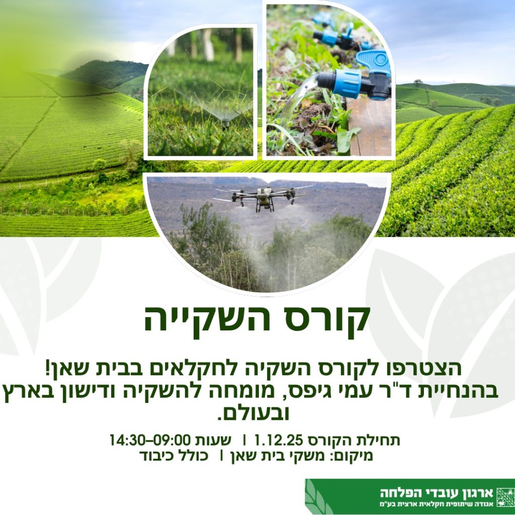 הקורס בהנחיית דר” עמי גיפס – אגרונום בעל תואר שלישי מהפקולטה לחקלאות, ניסיון מקצועי: 7 שנים בגידולי שלחין בקיבוץ יהל בערבה, 18 שנים מדריך השקיה ודישון באגף שירות שדה, שה”ם משרד החקלאות, 14 שנים במחלקה החקלאית התאגידית של נטפים בתפקידי ייעוץ בעיקר בגידולי שדה וירקות בעולם, ובהמשך ריכוז של המחקר ופיתוח במחלקה החקלאית וכיום יועץ עצמאי.