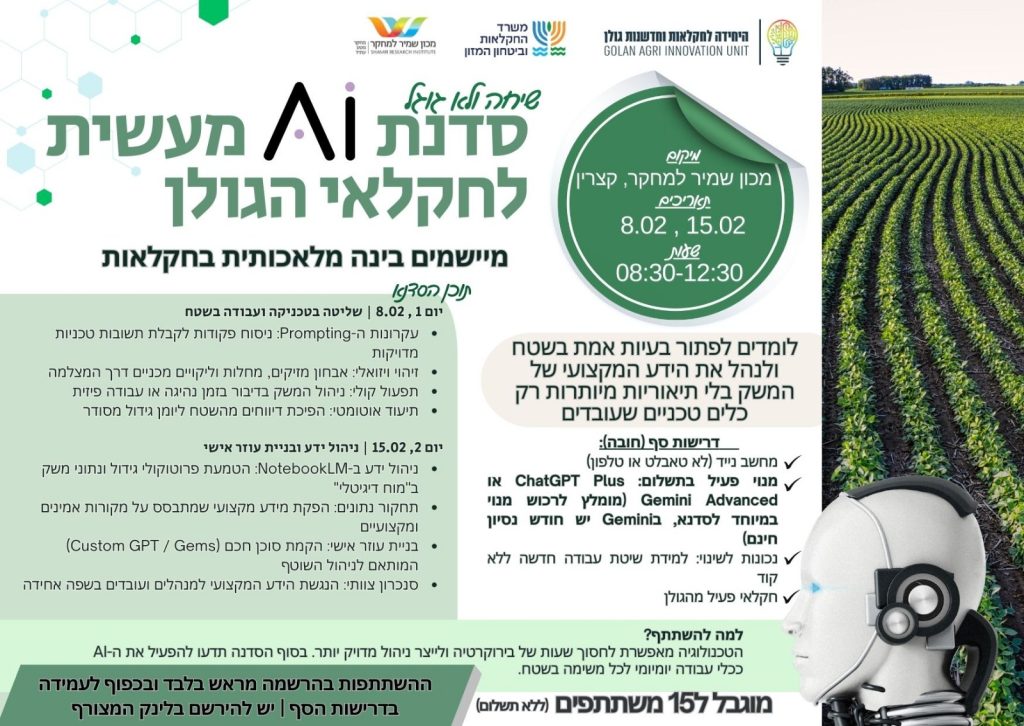 הכשרה מעשית לעבודה עם כלי AI לניהול ידע וייעול העבודה במשק.